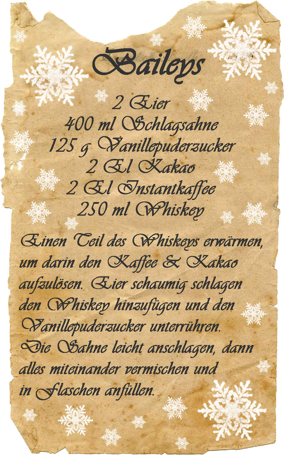meine tochter und ich können gar nicht aufhören mit den weihnachtlichen aktivitäten … aber es müssen sachen sein die recht schnell zu machen sind, wie zum beispiel baileys …