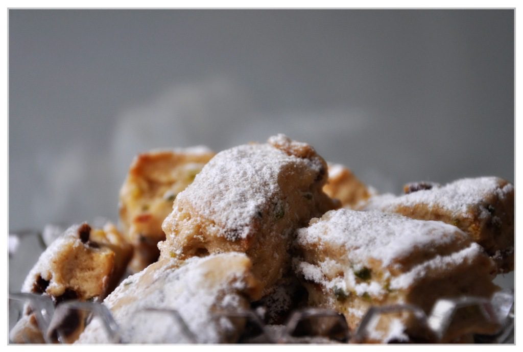 bei steph habe ich vor ein paar tagen ein leckeres rezept für stollenkonfekt mit cranberries und pistazien gesehen und MUSSTE es nachbacken (das rezept findet ihr hier im kleinen kuriositätenladen)