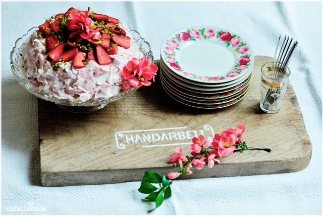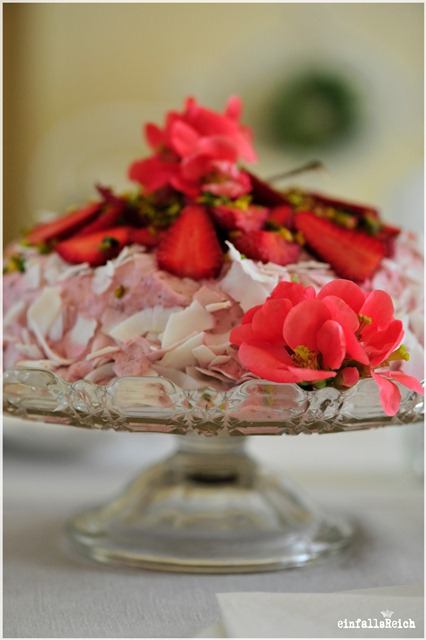 egal wie hoch ihr stapelt, den abschluss bilden ein berg kleingeschnittener erdbeeren, daübergestreute pistazien, baiser oder kokosspäne oder alles zusammen 😉