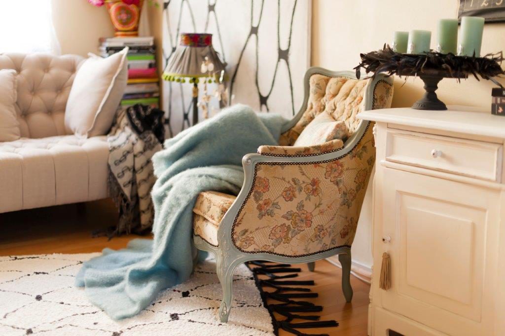 Die Deckenfarbe hast du schön ausgesucht und ziert den Raum und Sessel mit einem kühlen, pudrigen Ton…herrlich! 🙂