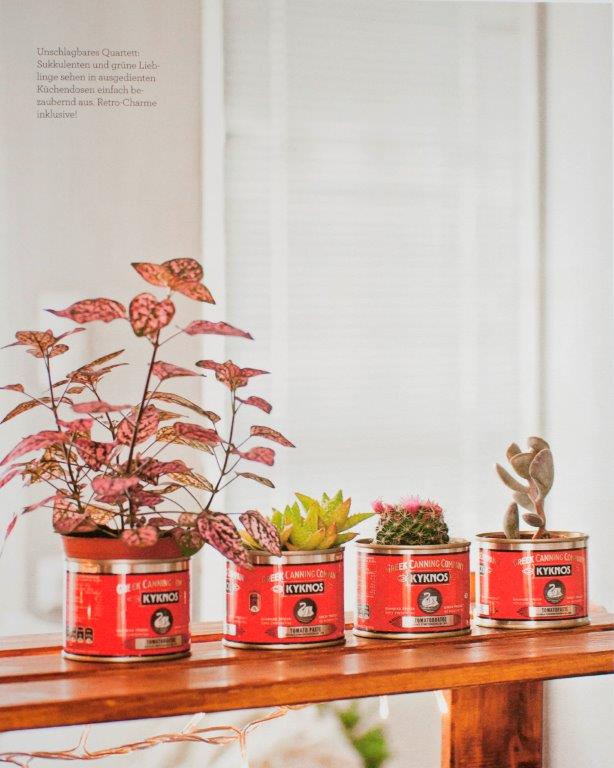 Die bepflanzten Dosen aus dem Buch gefallen mir besonders gut – leider habe ich nicht so viel Platz vor den Fenstern für das passende Tischchen dazu.