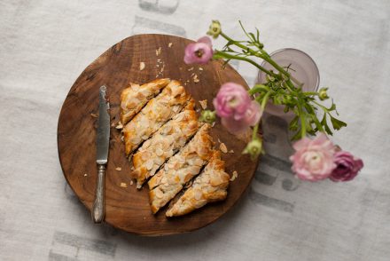 etwas abkühlen lassen, mit joghurt bestreichen und mit obst eurer wahl belegen.