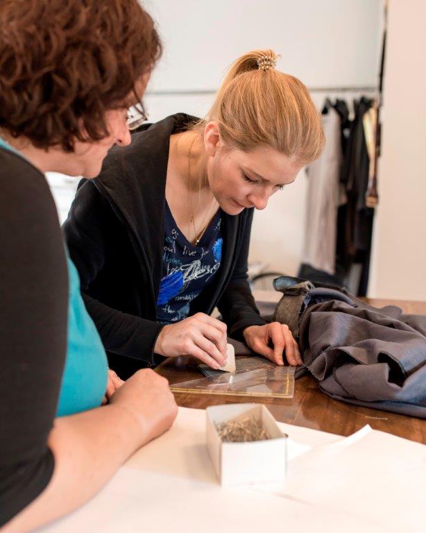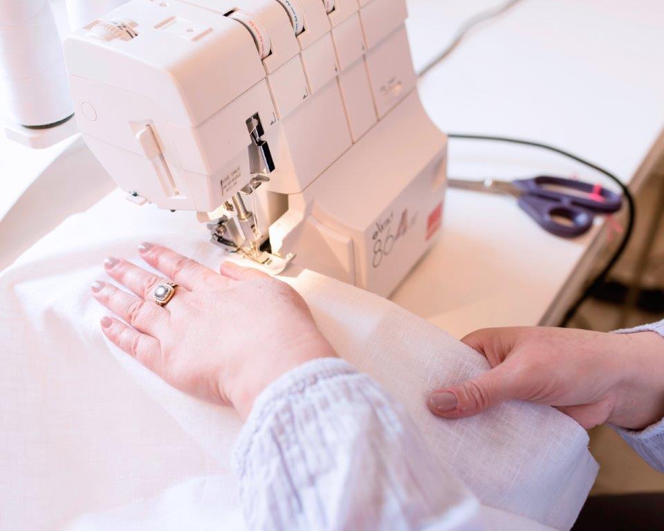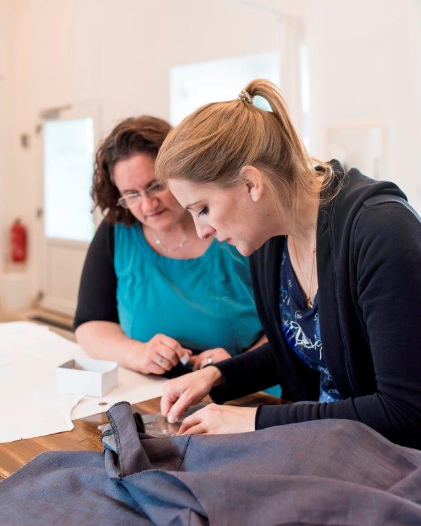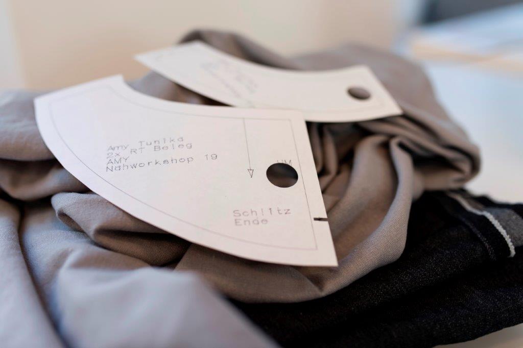 So konnten wir an dem Tag, nach einer kurzen Einweisung an den Nähmaschinen, der Dampfstation und der Overlock, sofort loslegen mit den ersten Nähsteps…