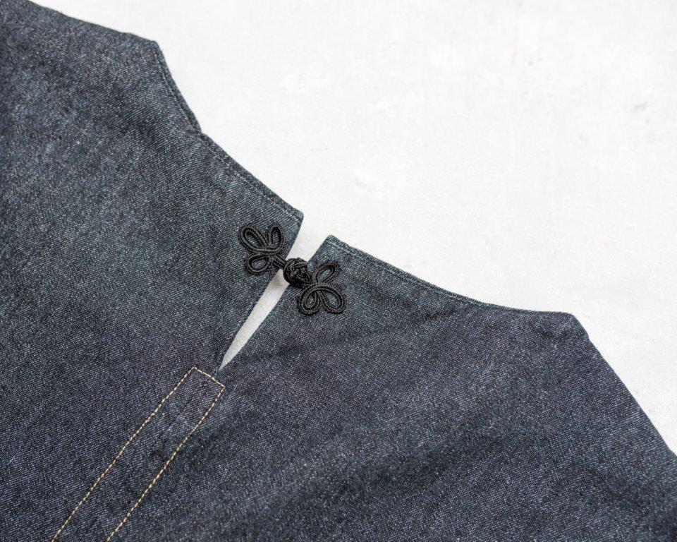 ein folkloristisch anmutender Verschluss am Hals und ein handmade Stoffetikett am Abschlusssaum…
