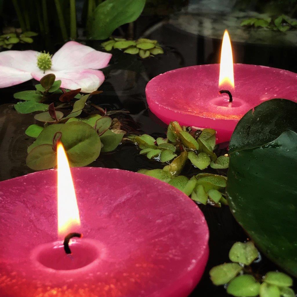 – nach Belieben Schwimmkerzen rein